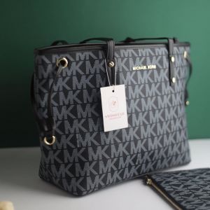 Michael_Kors Large Jet Set Big Mk Print Tote Bag With Dust Bag (2003-Black)