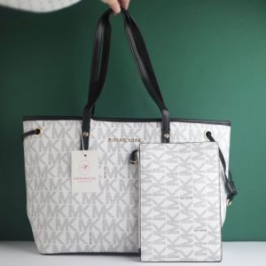 Michael_Kors Large Jet Set Big Mk Print Tote Bag With Dust Bag (2003-White)
