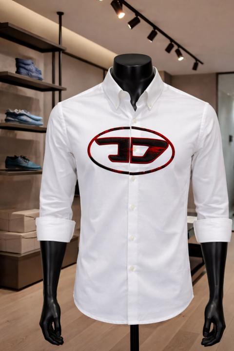 Diese_l Middle Brand Print Full Sleeves Shirt White